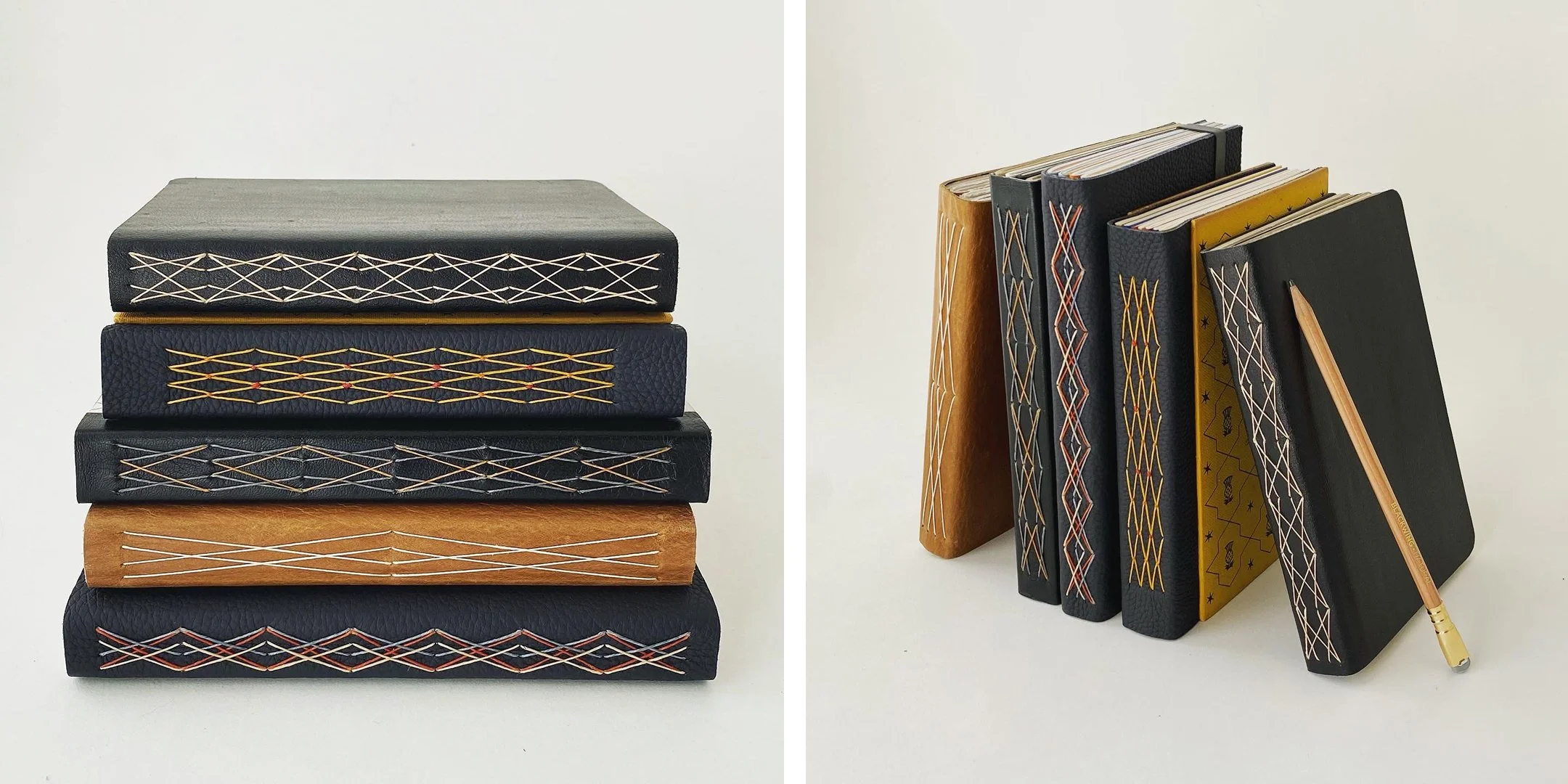 Make yourself the perfect A5-sized sketchbook or journal, created with buttery-soft leather covers, your choice of papers inside, and hand-stitched using coloured thread using a fancy criss-cross binding technique.